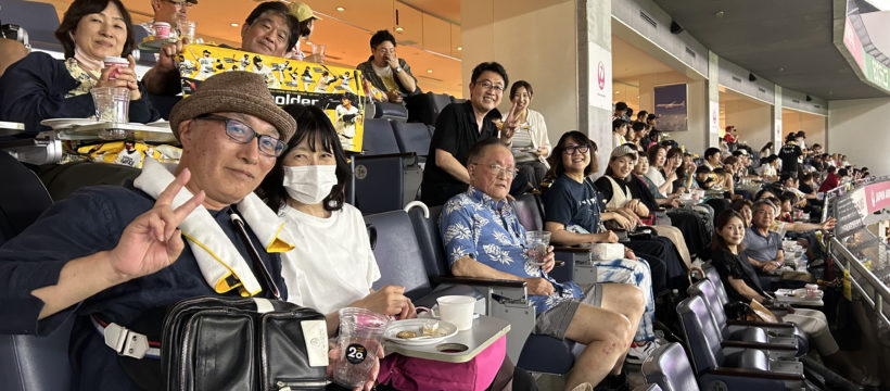 みずほPayPayドーム福岡野球観戦 厚生事業報告 8月11日、福岡ソフトバンクホークス対北海道日本ハムファイターズ戦を、支部会員、福岡歯科大学同窓会役員、九州歯科大学同窓会役員、歯科医師会役員の先生方を含めて観戦に